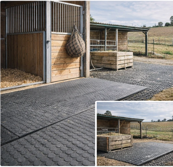 Nous proposons des solutions complètes de sol équestre, adaptées aux contraintes réelles des écuries, paddocks et infrastructures.